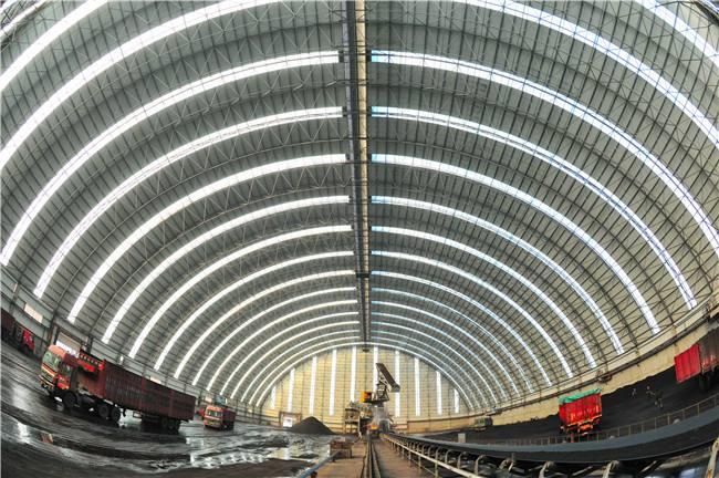 堆场料场封闭式主体结构为新型的钢河南网架结构,维修结构为河南钢结构河南不锈钢板和纤维增强塑料灯具,其外形以河南网架式和平板为主,连接柱河南施工自由,设置喷雾自动喷水系统,从而可以实现棚内所有物料的覆盖,减少物料在运输过程中的损耗,起到防尘的作用,减少工厂关闭后的二氧化硫排放量,50mg/m3颗粒排放量小于10mg/m3,非常适合低能耗。低闭库自动感应反应对库存轮胎进行清洁,确保轮胎不受道路污染;封闭的储存区可从源头控制粉尘污染,控制无序排放。